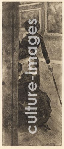 Degas, Edgar (1834-1917), Au Louvre: la peinture (Mary Cassatt), Aquatinta, Impressionismus, um 1879, Frankreich, Privatsammlung.