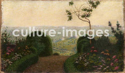 Morbelli, Angelo (1853-1919), Angolo di giardino (Gartenecke), Öl auf Leinwand, Postimpressionismus, 1909, Italien, Privatsammlung.