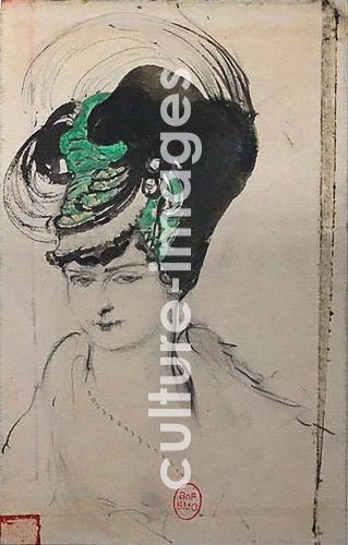 Bakst, Léon (1866-1924), Misia Sert et projet de chapeau, Farblithographie, Jugendstil, um 1910, Russland, Bibliothèque-Musée de l'Opera Garnier, Paris.