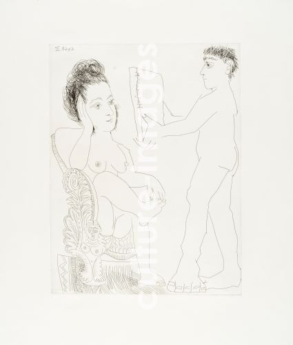 Picasso, Pablo (1881-1973), Jeune homme présentant un miroir à une femme, Radierung, Moderne, 1968, Spanien, Privatsammlung.