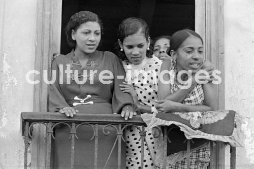 Kuba, Havanna, Strassenszene, Balkon, Frau, Mädchen, Karibik. Aus der Sammlung Hanns Tschira, Bordfotograf des Norddeutschen Lloyd 1930-1939. Cuba, Havana, urban area, Balcony, woman, Girls, The Caribbean. Collection Hanns Tschira, photographer of the North German Lloyd 1930-1939.