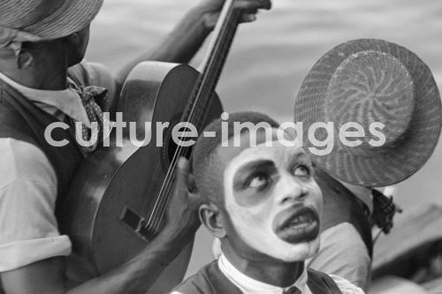 Trinidad und Tobago, Karibik, Port of Spain, Musikanten. Aus der Sammlung Hanns Tschira, Bordfotograf des Norddeutschen Lloyd 1930-1939. Trinidad and Tobago, The Caribbean, Port of Spain, Musicians. Collection Hanns Tschira, photographer of the North German Lloyd 1930-1939.
