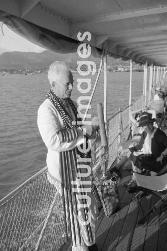 Trinidad und Tobago, Karibik, Port of Spain, an Bord, Passagier, Passagiere, Passagierdeck. Aus der Sammlung Hanns Tschira, Bordfotograf des Norddeutschen Lloyd 1930-1939. Trinidad and Tobago, The Caribbean, Port of Spain, aboard, Passenger, Passengers, Passenger's deck. Collection Hanns Tschira, photographer of the North German Lloyd 1930-1939.