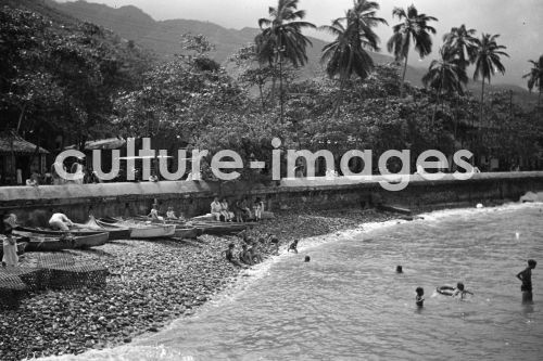 Venezuela, La Guaira, Bundesstaat Vargas, Strand. Aus der Sammlung Hanns Tschira, Bordfotograf des Norddeutschen Lloyd 1930-1939. Venezuela, La Guaira, Federal State Vargas, Beach. Collection Hanns Tschira, photographer of the North German Lloyd 1930-1939.