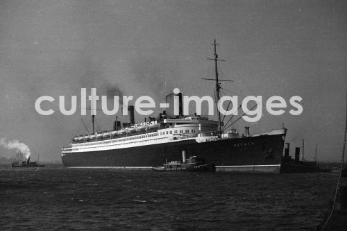 Seefahrt, Schiffahrt, Einfahrt der Bremen in New York City, Schiff Bremen, Norddeutscher Lloyd, Aussenansicht. Aus der Sammlung Hanns Tschira, Bordfotograf des Norddeutschen Lloyd 1930-1939. The Ship Bremen heading New York City, Steam Navigation, Navigation, Passenger Liner, North German Lloyd, Norddeutscher Lloyd. Collection Hanns Tschira, photographer of the North German Lloyd 1930-1939.