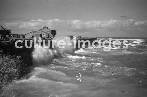 Marokko, Casablanca, Ufer, Küste, Brandung. Aus der Sammlung Hanns Tschira, Bordfotograf des Norddeutschen Lloyd 1930-1939. Morocco, Casablanca, Bank, Coast, Surf. Collection Hanns Tschira, photographer of the North German Lloyd 1930-1939.