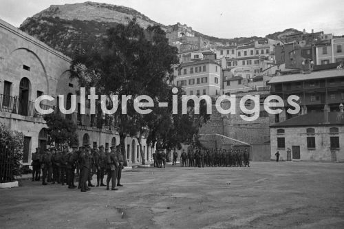 Grossbritanien, Gibraltar, Vereinigtes Königreich, Stadtansicht. Aus der Sammlung Hanns Tschira, Bordfotograf des Norddeutschen Lloyd 1930-1939. Grossbritanien, Gibraltar, The United Kingdom, City view, Europe. Collection Hanns Tschira, photographer of the North German Lloyd 1930-1939.