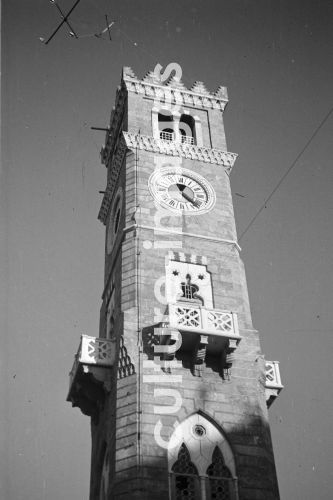 Libanon, Kirchturm mit Kirchturmuhr, Beirut, Stadtansicht. Aus der Sammlung Hanns Tschira, Bordfotograf des Norddeutschen Lloyd 1930-1939. Lebanon, Beirut, City view, Middle East. Collection Hanns Tschira, photographer of the North German Lloyd 1930-1939.