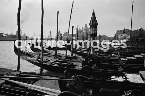 Italien, Venedig, Gondel, Gondeln, Kanal, Boot. Aus der Sammlung Hanns Tschira, Bordfotograf des Norddeutschen Lloyd 1930-1939. Italy, Venice, Gondola, Boat, Channel. Collection Hanns Tschira, photographer of the North German Lloyd 1930-1939.