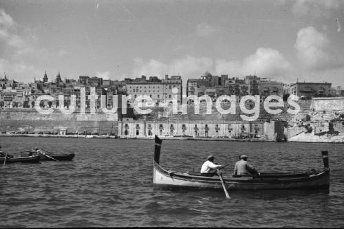 Malta, Valletta, Stadtansicht. Aus der Sammlung Hanns Tschira, Bordfotograf des Norddeutschen Lloyd 1930-1939. Malta, Valetta, City view. Collection Hanns Tschira, photographer of the North German Lloyd 1930-1939.