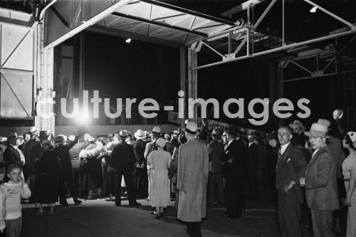 Seefahrt, Nachtaufnahme, Hafen, Pieranlagen, Pier, Kai, Norddeutscher Lloyd, TS Bremen, Turbine Steamer, Turbinendampfer, an Bord. Aus der Sammlung Hanns Tschira, Bordfotograf des Norddeutschen Lloyd 1930-1939. Bremen, Night admission, Harbour, harbor, Pier, Passenger Liner, North German Lloyd, Bremen TS, Turbine Steamer, Turbine steamboat, port, aboard, sea journey, cruise, passage. Collection Hanns Tschira, photographer of the North German Lloyd 1930-1939.
