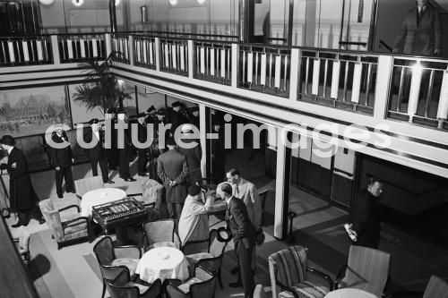Seefahrt, Interieur, Innenansicht, Inneneinrichtung, Dampfer, Interieur, Norddeutscher Lloyd, TS Bremen, Turbine Steamer, Turbinendampfer, an Bord. Aus der Sammlung Hanns Tschira, Bordfotograf des Norddeutschen Lloyd 1930-1939. Bremen, Interior, Interior view, interior fittings, Steamboat, Passenger Liner, North German Lloyd, Bremen TS, Turbine Steamer, Turbine steamboat, aboard, sea journey, cruise, passage. Collection Hanns Tschira, photographer of the North German Lloyd 1930-1939.