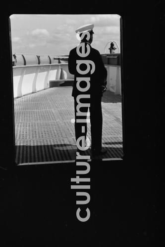 Schiff Bremen, Offiziere, Leopold Ziegenbein, Schiff, Norddeutscher Lloyd, TS Bremen, Turbine Steamer, Turbinendampfer, an Bord, Kommodore. Aus der Sammlung Hanns Tschira, Bordfotograf des Norddeutschen Lloyd 1930-1939. Bremen, Captain of the Bremen, Outside view, Officers, Leopold Ziegenbein, Passenger Liner, North German Lloyd, Bremen TS, Turbine Steamer, Turbine steamboat, aboard, Commodore, sea journey, cruise, passage. Collection Hanns Tschira, photographer of the North German Lloyd 1930-1939.