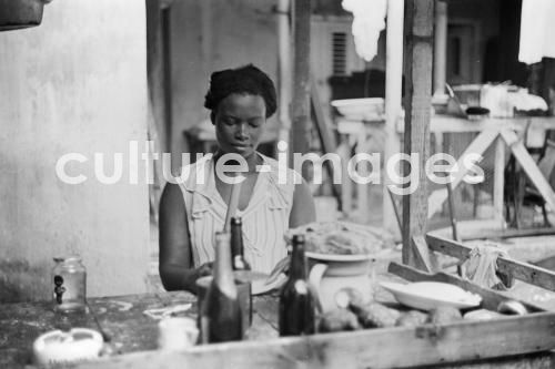 Curaçao, Willemstad, Karibik, Niederländische Antillen, Hotel, Küche, Hotelküche. Aus der Sammlung Hanns Tschira, Bordfotograf des Norddeutschen Lloyd 1930-1939. Curaçao, Willemstad, The Caribbean, The Dutch Antilles, Hotel, Kitchen, Hotel kitchen . Collection Hanns Tschira, photographer of the North German Lloyd 1930-1939.