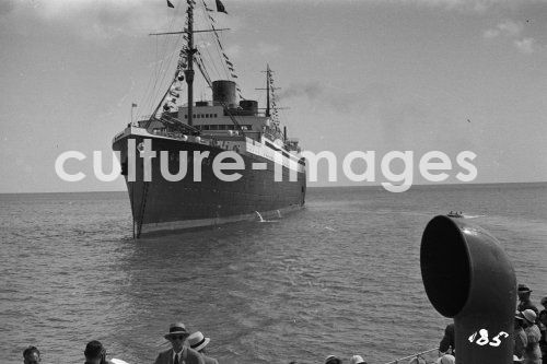 Venezuela, La Guaira, Bundesstaat Vargas, Norddeutscher Lloyd, Schiff Bremen, Passagierschiff, Aussenansicht, Dampfer, Dampfschiffahrt, Schiff, Bremen, Schiffahrt. Aus der Sammlung Hanns Tschira, Bordfotograf des Norddeutschen Lloyd 1930-1939 Venezuela, La Guaira, Federal State Vargas, North German Lloyd, ship Bremen, passenger liner, outside view, steamboat, steam navigation, turbine steamer, TS Bremen, navigation. Collection Hanns Tschira, photographer of the North German Lloyd 1930-1939