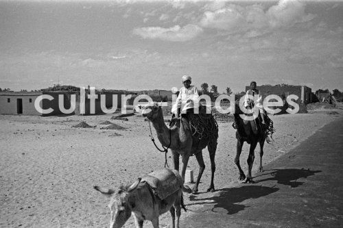 Ägypten, Suezkanal, Kamele, Karawane, Kamelkarawane. Aus der Sammlung Hanns Tschira, Bordfotograf des Norddeutschen Lloyd 1930-1939 Egypt, the Suez Canal, camels, caravan, camel caravan. Collection Hanns Tschira, photographer of the North German Lloyd 1930-1939