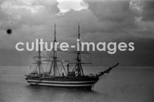 Seefahrt, Italien, Amerigo Vespucci, Schulsegelschiff der italienischen Marine, Segelschiff, Dreimaster, Grossegler, Aussenansicht. Aus der Sammlung Hanns Tschira, Bordfotograf des Norddeutschen Lloyd 1930-1939 navigation, Italy, Amerigo Vespucci, school sailing ship of the Italian Marine, sailing ship, three-masted sailing vessel, big yachtsman, outside view. Collection Hanns Tschira, photographer of the North German Lloyd 1930-1939