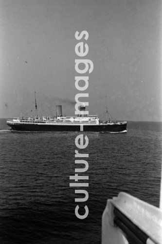 Frankreich, Cherbourg, Norddeutscher Lloyd, Schiff General von Steuben, auf Reede, Seeschiff, Dampfer, Passagierschiff, Dampfschiff, Schiffahrt. Aus der Sammlung Hanns Tschira, Bordfotograf des Norddeutschen Lloyd 1930-1939 France, Cherburg, North German Lloyd, ship general of Steuben, on roadstead, sea ship, steamboat, passenger liner, steamer, navigation. Collection Hanns Tschira, photographer of the North German Lloyd 1930-1939