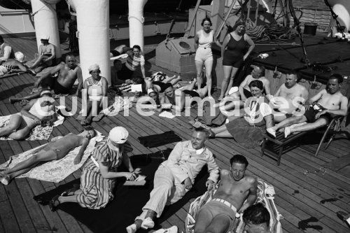 Seefahrt, Passagiere, an Bord, Norddeutscher Lloyd, Columbus, Passagierschiff, Seeschiff, Dampfer, Dampfschiffahrt, Dampfschiff, Schiffahrt, auf Deck, . Aus der Sammlung Hanns Tschira, Bordfotograf des Norddeutschen Lloyd 1930-1939 navigation, passengers, aboard, North German Lloyd, Columbus, passenger liner, sea ship, steamboat, steam navigation, steamer, navigation, on deck. Collection Hanns Tschira, photographer of the North German Lloyd 1930-1939