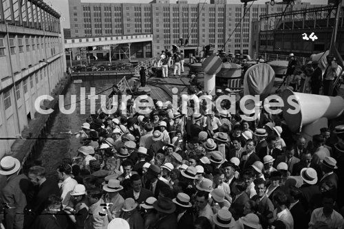 Anlegen, Seefahrt, Norddeutscher Lloyd, Columbus, Passagierschiff, USA, New York, Brooklyn, Pieranlagen. Aus der Sammlung Hanns Tschira, Bordfotograf des Norddeutschen Lloyd 1930-1939 navigation, landing, North German Lloyd, Columbus, passenger liner, the USA, New York, Brooklyn, pier arrangements. Collection Hanns Tschira, photographer of the North German Lloyd 1930-1939