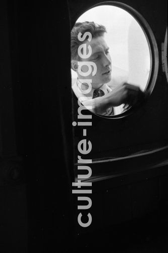 Seefahrt, Bullauge, Seemann, Detail an Bord der Columbus, Passagierdampfer. Aus der Sammlung Hanns Tschira, Bordfotograf des Norddeutschen Lloyd 1930-1939. navigation, porthole, sailor, detail, . Collection Hanns Tschira, photographer of the North German Lloyd 1930-1939.