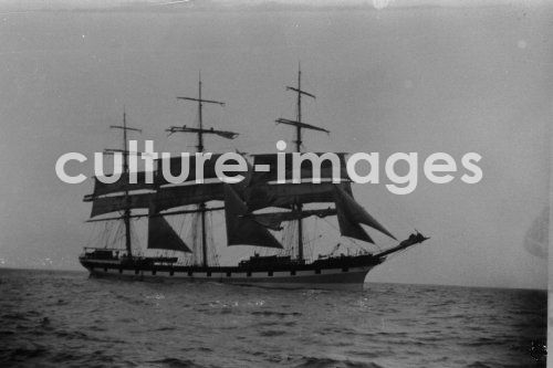 Seefahrt, Reproduktion eines historischen Photos, Schiff, Segelschiff. Aus der Sammlung Hanns Tschira, Bordfotograf des Norddeutschen Lloyd 1930-1939. navigation, reproduction of a historic photo, ship, sailing ship. Collection Hanns Tschira, photographer of the North German Lloyd 1930-1939.