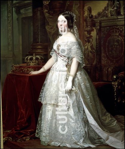 Isabella II. María Luisa (span. Isabel II, * 10. Oktober 1830 in Madrid, † 9. April 1904 in Paris) , Königin von Spanien. Öl auf Leinwand von FEDERICO DE MADRAZO MUSEO ACADEMIA BELLAS ARTES. MADRID - ISABEL II REINA DE ESPAÑA. NACE EN MADRID 1830 Y MUERE EN PARIS 1904. SU REINADO VA DESDE 1833 A 1868 OLEO DE FEDERICO DE MADRAZO MUSEO ACADEMIA BELLAS ARTES. MADRID