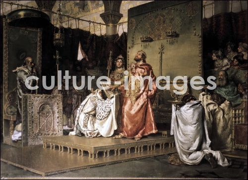 Rekkared I. (auch Reccared), König der Westgoten 586-601. CONVERSION DE RECADERO Öl auf Leinwand von ANTONIO MUÑOZ DEGRAIN PALACIO DEL SENADO. MADRID - RECAREDO I REY VISIGODO DE 586 a 601 CONVERSION DE RECADERO OLEO DE ANTONIO MUÑOZ DEGRAIN PALACIO DEL SENADO. MADRID