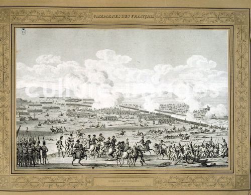 Napoleon I., Kaiser der Franzosen, 1769 - 1821. Schlacht von AUSTERLITZ ,1805. Stich BIBLIOTECA NACIONAL . MADRID - NAPOLEON I EMPERADOR DE FRANCES . 1769 - 1821 BATALLA DE AUSTERLITZ . LAS TROPAS FRANCESAS DERROTAN AL EJERCITO AUSTRO-RUSO 2-12-1805 Grabado BIBLIOTECA NACIONAL . MADRID