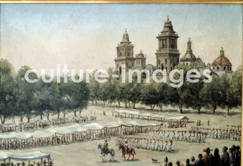 ALMANZA, CLEOFAS PINTOR MEXICANO 1850 - 1915 EL ZOCALO , OLEO SOBRE LIENZO