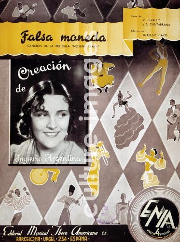 IMPERIO ARGENTINA (MAGDALENA NILE DEL RIO), argentinische Sängerin, Tänzerin und Schauspielerin, 1908-2002. Titelbild von LA PARTITUR LA FALSA MONEDA - IMPERIO ARGENTINA MAGDALENA NILE DELRIO CANTANTE Y ACTRIZ ESPAÑOLA . BUENOS AIRE 1908 -2002 PORTADA DE LA PARTITURA LA FALSA MONEDA