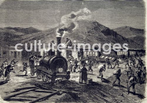 Eisenbahn in Spanien, Entgleisung und Ausrauben von einem Zug in Andalusien, 30-03-1872 Stich - FERROCARRILES ESPAÑA DECARRILAMIENTO Y ROBO DEL TREN DE ANDALUCIA EL 30-03-1872 Grabado , Illustration