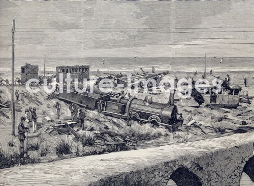 FERROCARRILES ESPAÑA DECARRILAMIENTO DEL TREN CORREO EN CADIZ, AÑO 1879 Grabado ILUSTRTACION ESPAÑOLA Y AMERICANA