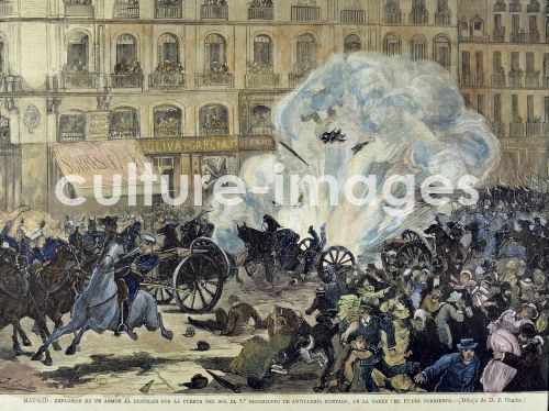 MADRID EXPLOSION DE UN ARMON DE ARTILLERIA A SU PASO POR LA PUERTA DEL SOL EL 19 Juni 1879 Zeichnung von JUAN COMBA MADRID PINTADO - MADRID EXPLOSION DE UN ARMON DE ARTILLERIA A SU PASO POR LA PUERTA DEL SOL EL 19 DE JUNIO DE 1879 DIBUJO DE JUAN COMBA , Illustration MADRID PINTADO