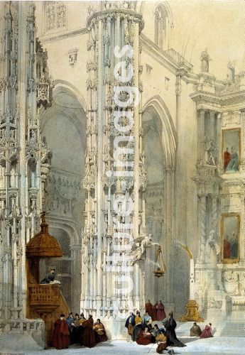 CADIZ JEREZ DE LA FRONTERA IGLESIA DE SAN MIGUEL INTERIOR DE SAN MIGUEL DIBUJO DE DAVID ROBERTS LONDRES 1837