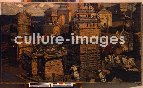 Building a Town, Roerich, Nicholas (1874-1947), oil on canvas, Symbolism, 1902, Russia, State Tretyakov Gallery, Moscow