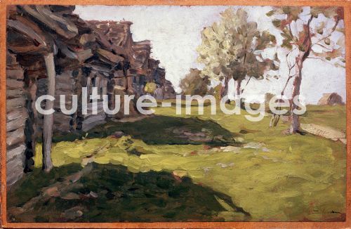Sunlit day. A small village, Levitan, Isaak Ilyich (1860-1900), oil on canvas, Russian Painting of 19th century, 1898, Russia, State Tretyakov Gallery, Moscow