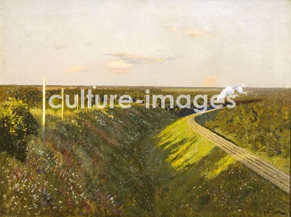 A train on the way, Levitan, Isaak Ilyich (1860-1900), oil on canvas, Russian Painting of 19th century, c. 1890, Russia, State Art Museum, Odessa