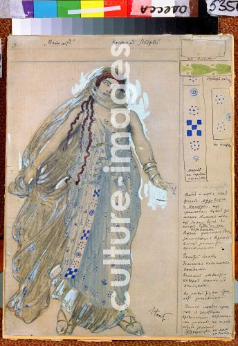 Phaidra. Kostümentwurf zum Theaterstück Hippolytos von Euripides, Bakst, Léon (1866-1924). Aquarell und weisse Farbe auf Karton, Bühnenmalerei, 1902, Staatliches Kunstmuseum, Odessa, Russland - Phaidra. Costume design for the drama Hippolytus by Euripides, Bakst, Léon (1866-1924), watercolour and white colour on cardboard, painting, 1902, Russia, State Art Museum, Odessa