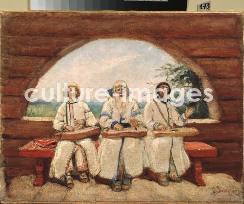 The Gusli Players, Vasnetsov, Viktor Mikhaylovich (1848-1926), oil on canvas, Russian Painting of 19th century, 1899. Russia, State Museum Abramtsevo Estate, near Moscow