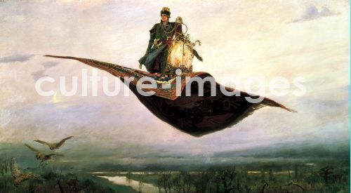 Riding a Flying Carpet, Vasnetsov, Viktor Mikhaylovich (1848-1926), oil on canvas, Russian Painting of 19th century, 1880, Russia, State Art Museum, Nizhny Novgorod