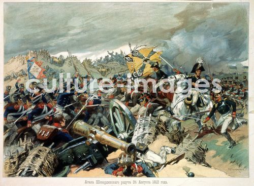 The Battle of Borodino on August 26, 1812. Third French Attak, Samokish, Nikolai Semyonovich (1860-1944), lithograph, watercolour, Russian Painting, end of 19th, early 20th century, c. 1900-c. 1910. Russia, State Borodino War and History Museum, Moscow