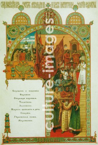 Viktor Michailowitsch Wasnezow, Speisekarte für das Festmahl anläßlich der Krönung des Zaren Alexander III. und Zarin Maria Fjodorowna