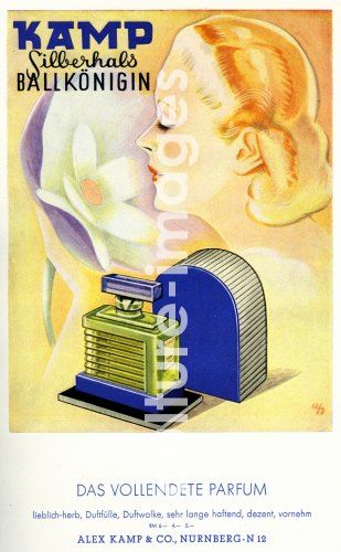 Advertising for perfume of the company ' Alex Kamp & Co ', Nürnberg, from the magazine: ' Illustrierte Zeitung ', Christmas 1941 ( 01.12.1941 ), page 7, original size 16 cm x 25,5 cm, publishing house J.J. Weber, Leipzig. Germany.