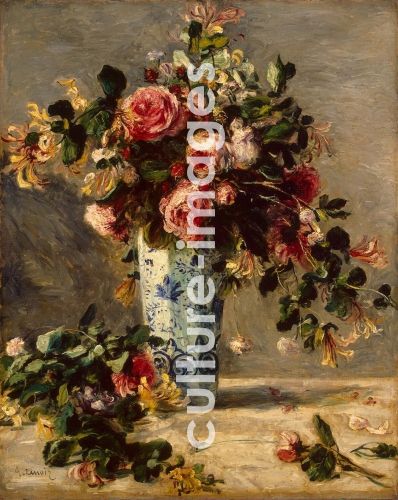 Renoir, Pierre Auguste (1841-1919), Roses and Jasmine in a Delft Vase, Oil on canvas, Impressionism, 1880-1881, State Hermitage, St. Petersburg,