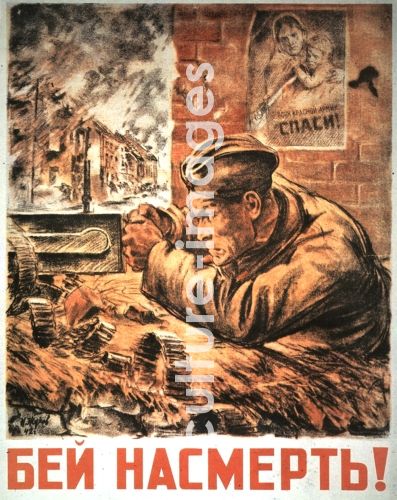 Beat to death!, Colour lithograph, Soviet political agitation art, 1942, State Museum of History, Moscow