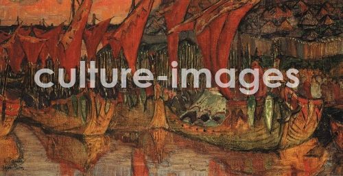 Expedition to Chersonesos by Vladimir the Great (The Red Sails), Tempera on cardboard, Symbolism, 1900, Russian State Library, Moscow