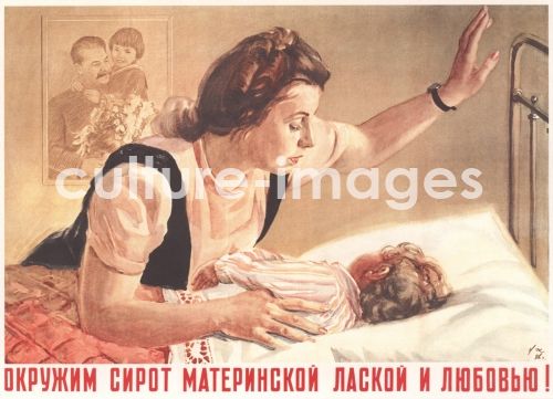 Let's lavish maternal care and love upon orphans! (Poster), Colour lithograph, Soviet political agitation art, 1947, Russian State Library, Moscow