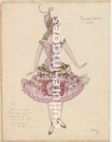 Bakst, Léon (1866-1924), Costume design for the ballet Sleeping Beauty by P. Tchaikovsky, Pencil, watercolour, gold on paper, Theatrical scenic painting, 1921, Private Collection