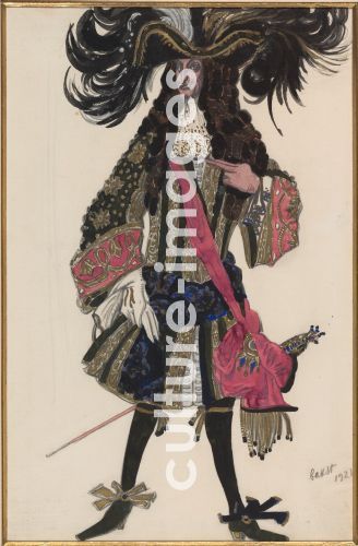 Bakst, Léon (1866-1924), Costume design for the ballet Sleeping Beauty by P. Tchaikovsky, Pencil, watercolour, gold on paper, Theatrical scenic painting, 1921, Private Collection